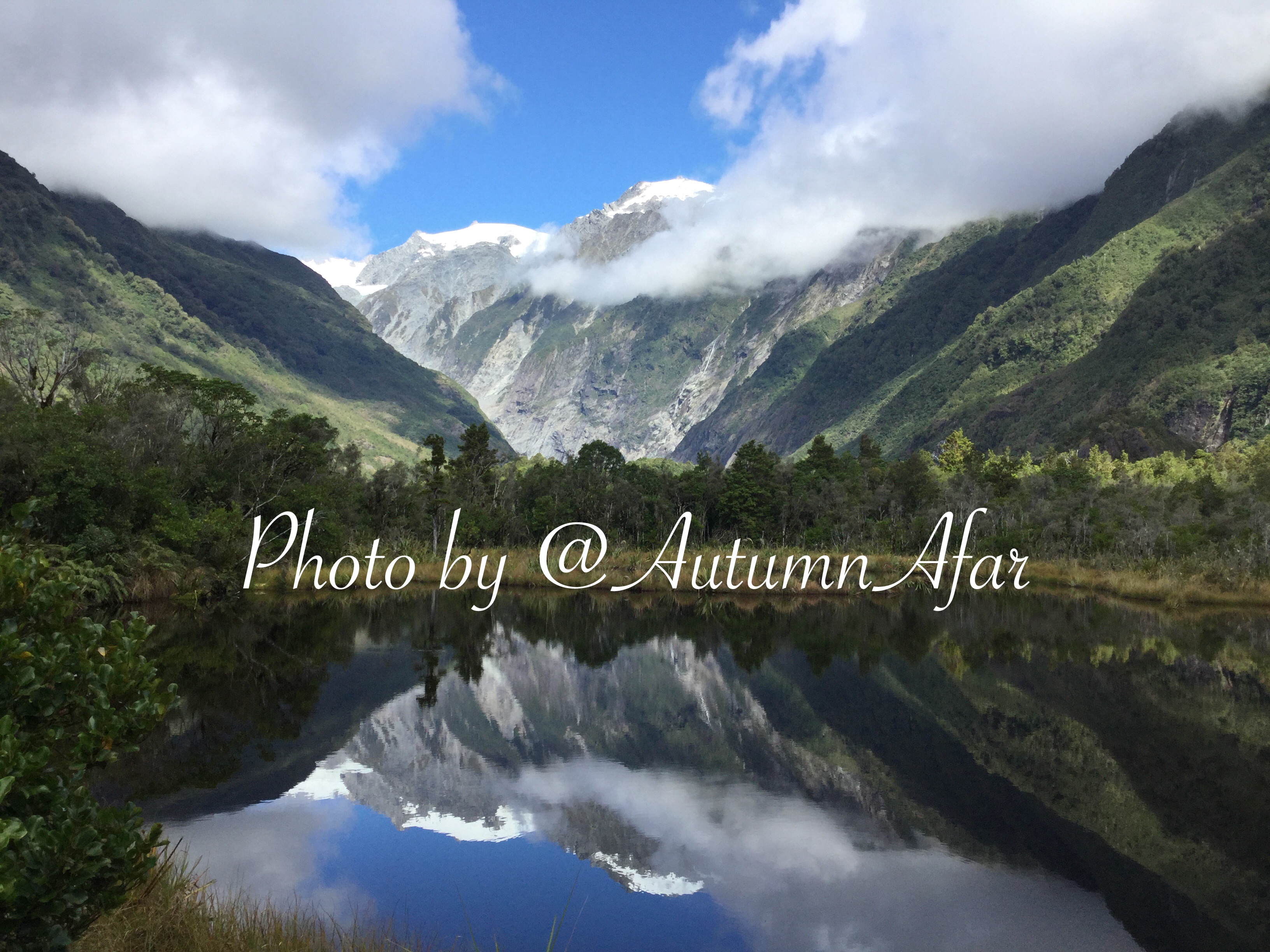 Lake Matheson is one of those places that you pinch yourself to make sure you’re not dreaming. I arrived somewhere around 7 in the morning, and it was a small hike, nothing strenuous, to get to the lake itself, but the views from the different platforms are all equally stunning. To be quite honest it was cool (according to the people I was there with) and I felt right at home by the lake walking in the fresh air with Fox Glacier off in the distance. Getting here early is important not only to see the mist over the lake and to see the sunrise, but to avoid the crowds and to see the lake when it’s still and you can see the mirror like reflection on the surface of the lake.